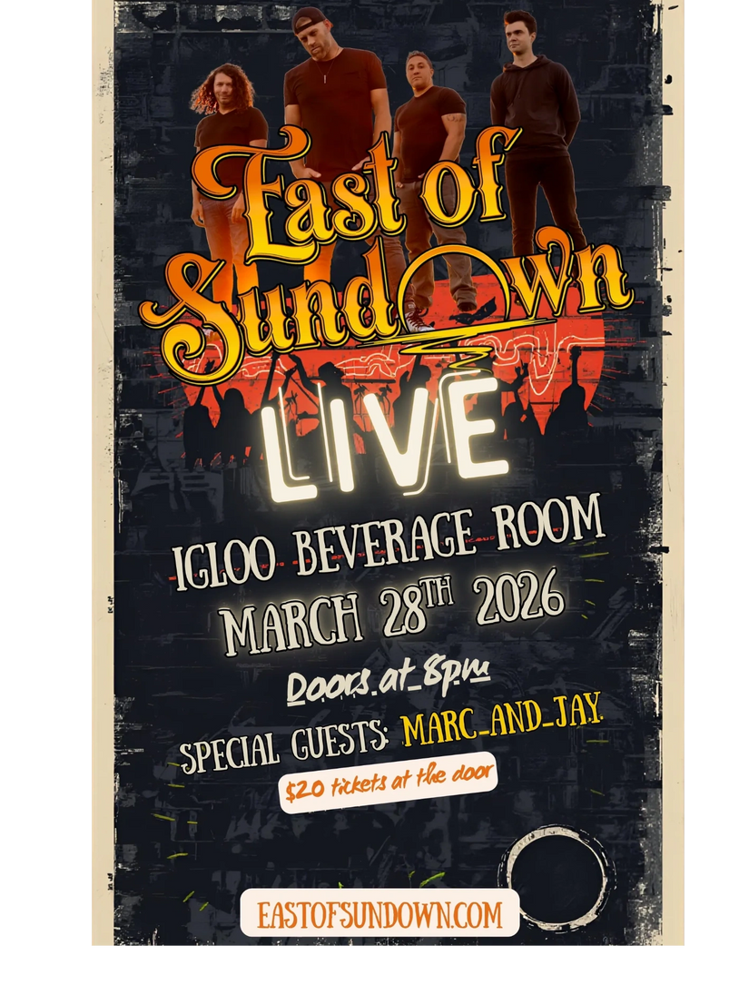 East of Sundown is a dynamic musical group that fuses the heart and soul of Country with the raw energy of Rock. Our unique sound resonates deeply with fans across Canada, blending traditional roots with modern influences.